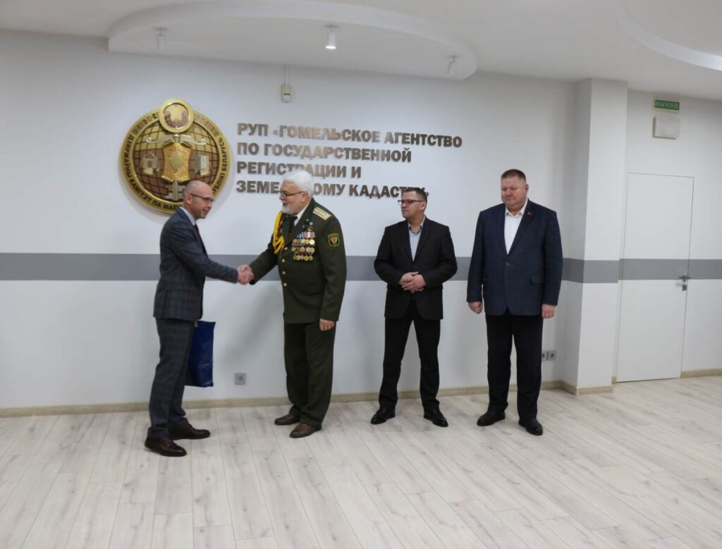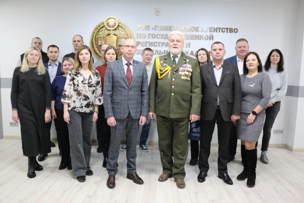 В канун памятной даты директор предприятия Александр Зарезако и коллектив РУП «Гомельское агентство по государственной регистрации и земельному кадастру» встретились c вышедшим на пенсию с предприятия работником, проработавшим в организации 18 лет, Виктором Казимировичем Страхановичем.