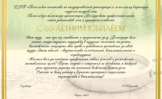 РУП «Гомельское агентство по государственной регистрации и земельному кадастру» поздравляет Гомельскую областную организацию Белорусского профессионального союза работников леса и природопользования с 60-летним юбилеем!
