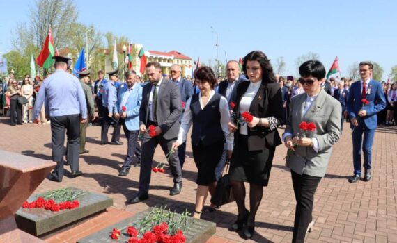 В канун 80-летия Дня Победы над фашистскими захватчиками в Великой Отечественной войне работники РУП «Гомельское агентство по государственной регистрации и земельному кадастру» принимают участие в торжественных митингах и возлагают цветы к мемориалам, отдавая дань памяти жертвам Великой Отечественной войны минутой молчания.