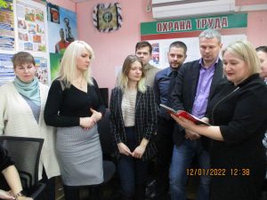 12.01.2022 в Добрушском бюро Гомельского межгородского филиала РУП «Гомельское агентство по государственной регистрации и земельному кадастру» при участии начальника отдела идеологической работы, культуры и по делам молодёжи Добрушского райисполкома Раздуевой Елены Фёдоровны и 13.01.2022 в Гомельском межгородском филиале РУП «Гомельское агентство по государственной регистрации и земельному кадастру» при участии заместителя главы администрации Новобелицкого района г. Гомеля Руденок Оксаны Константиновны прошли диалоговые площадки с трудовым коллективом по обсуждению внесения изменений и дополнений Конституции Республики Беларусь. Представители Елена Раздуева и Оксана Руденок рассказали участникам диалоговой площадки о предложенных изменениях Конституции Республики Беларусь. Оксана Руденок акцентировала внимание присутствующих что у каждого гражданина есть возможность внести предложения и изменения в Конституцию на базе общественных приемных, которые работают до 15 января 2022 года.