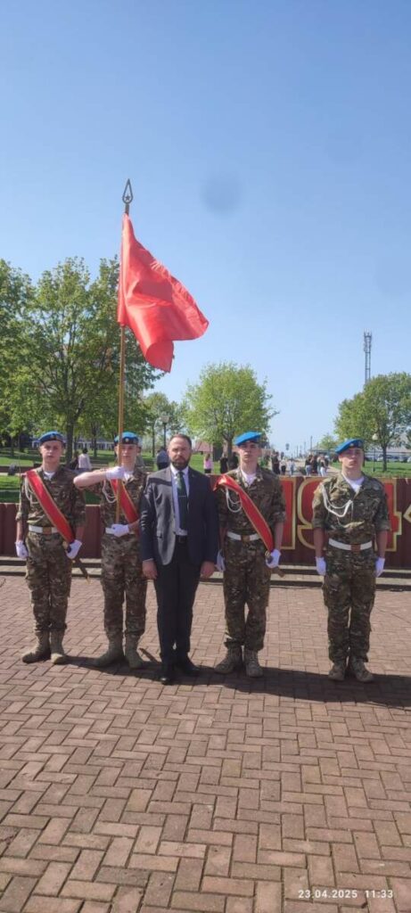 23 апреля 2025 года начальник Речицкого филиала, депутат районного Совета депутатов Юрченко Е.В. с представителями коллектива филиала присоединились патриотической акции Молодежного совета при Совете Республики Национального собрания Республики Беларусь «Флаг Победы» в г.Речица, посвященной 80-летию Победы в Великой Отечественной войне, главной целью которой является сохранение исторической памяти.