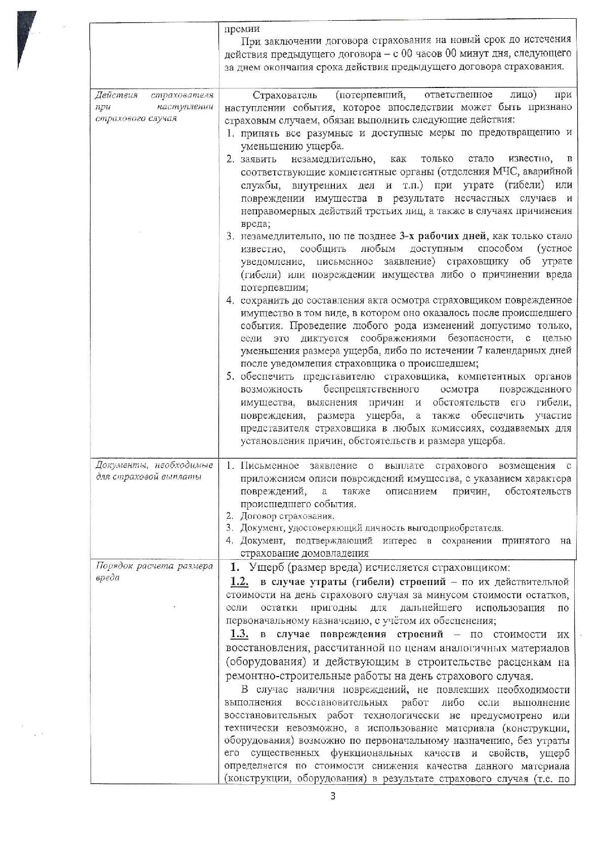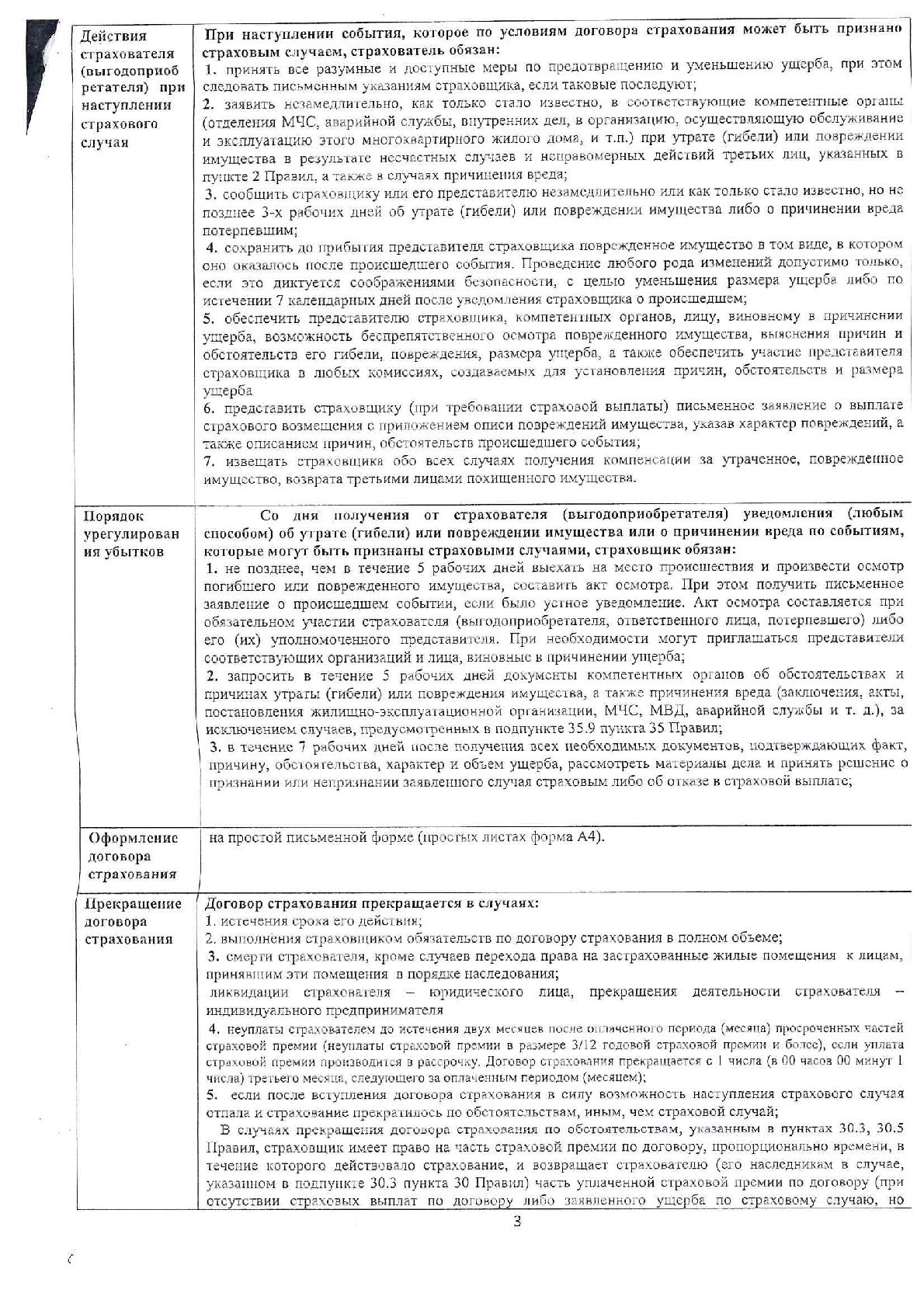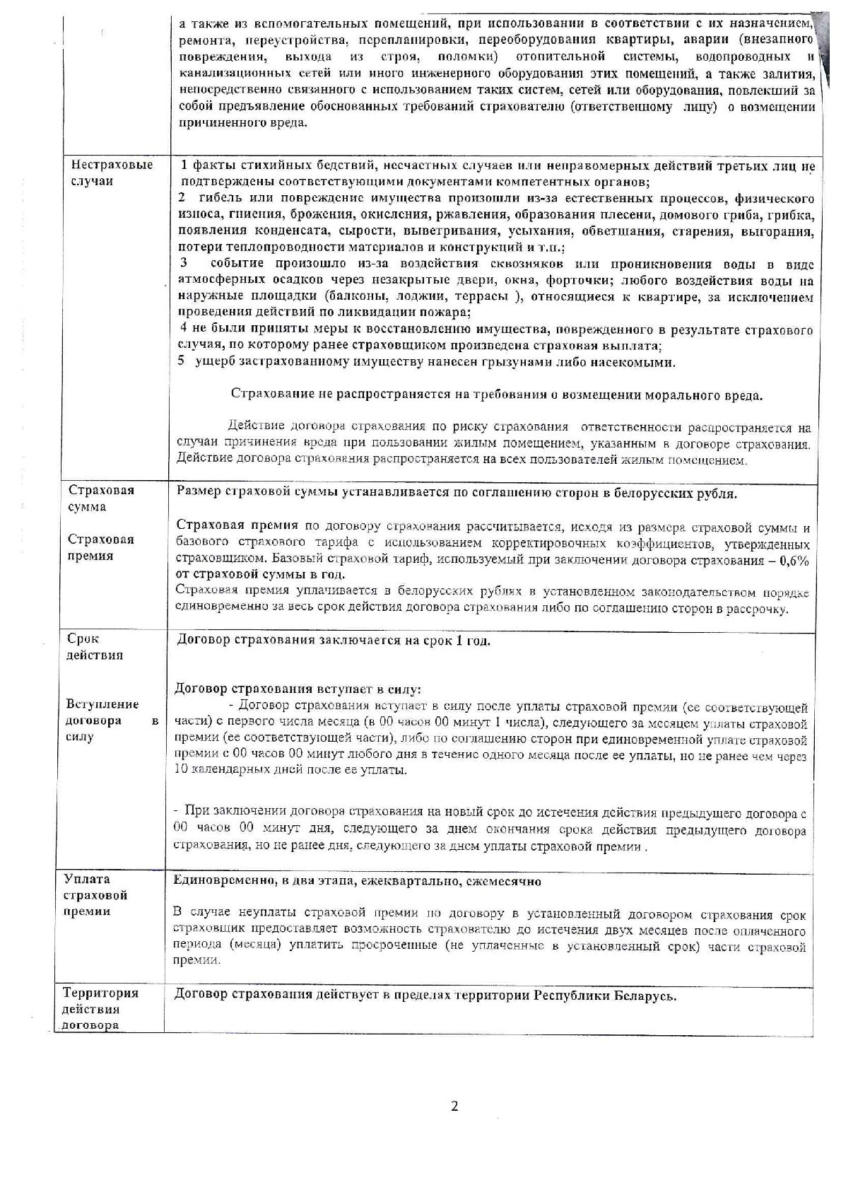 Информация об условиях страхования
