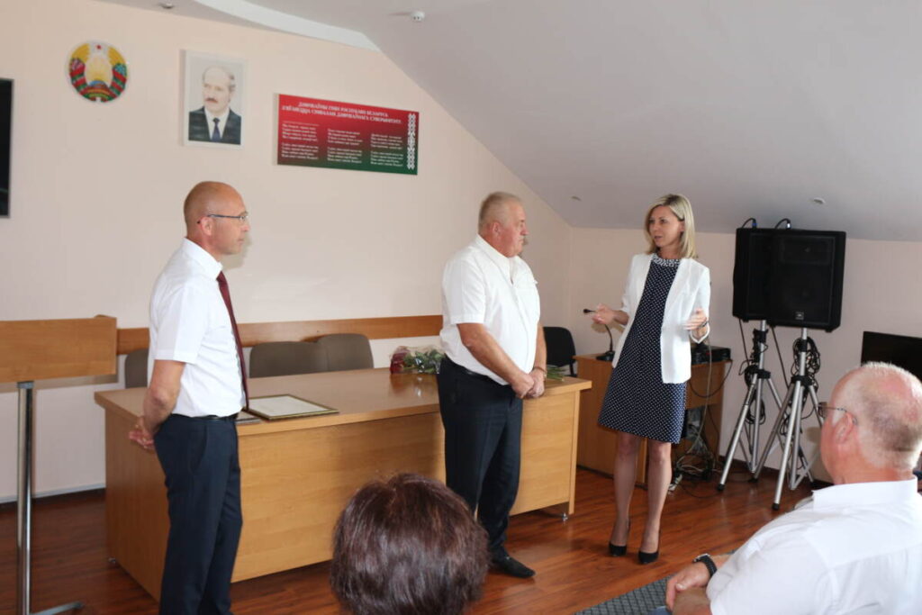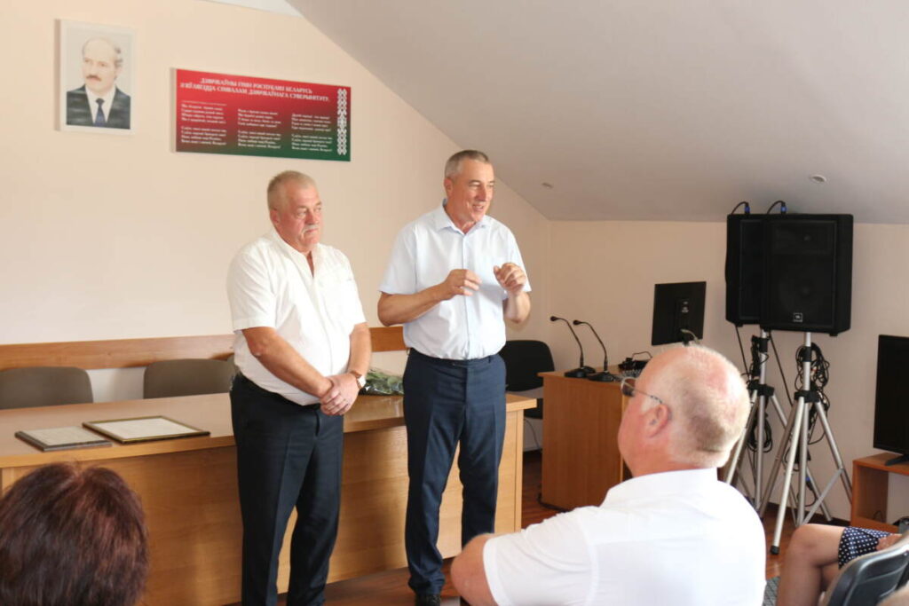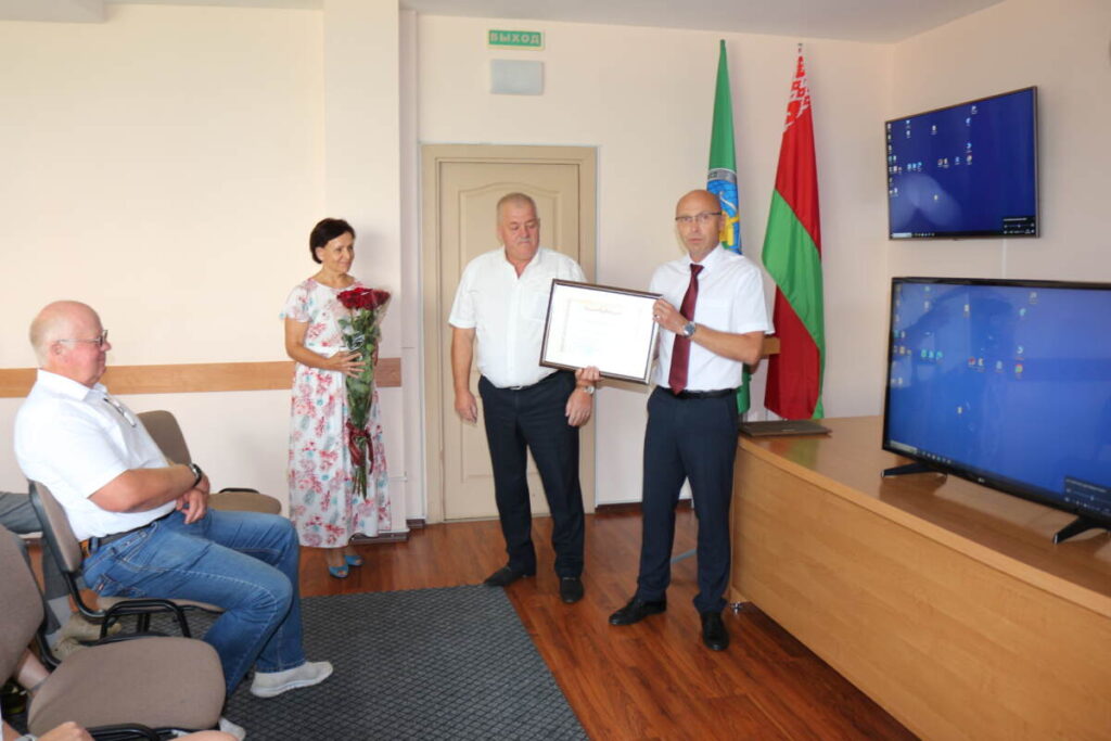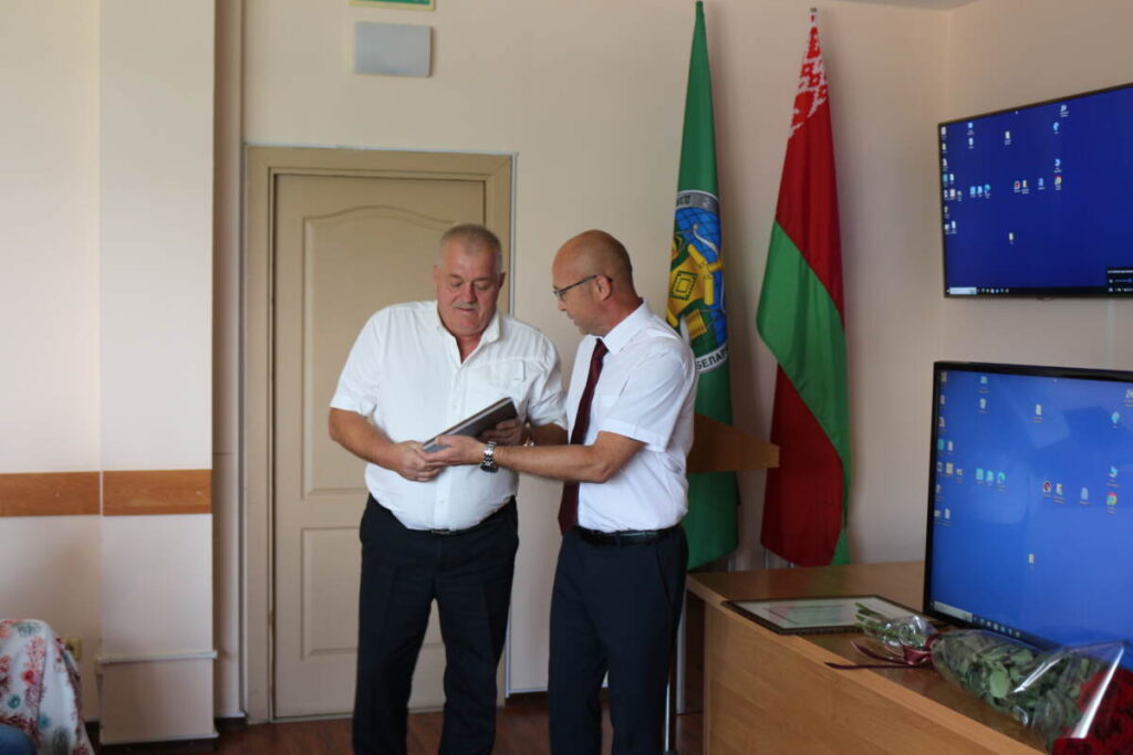 На встрече были произнесены тёплые слова и торжественно вручены Почетная грамота Государственного комитета по имуществу Республики Беларусь, Почетная грамота предприятия и Белорусского профсоюза работников леса и природопользования, подарки от коллег и коллектива.