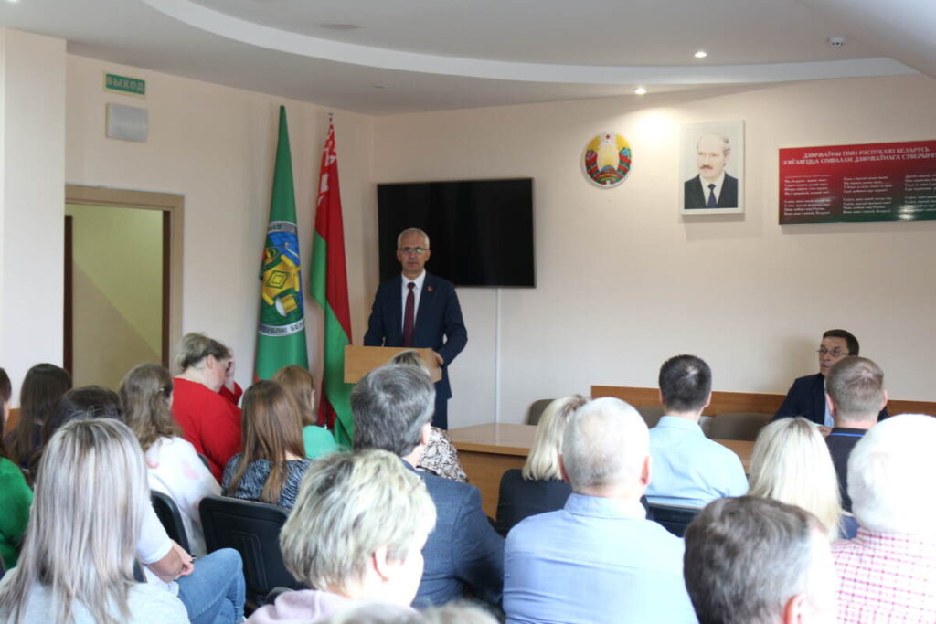 06.05.2024 состоялась встреча трудового коллектива предприятия с делегатом VII Всебелорусского народного собрания, председателем Гомельской областной организации Белорусского профессионального союза работников леса и природопользования А.П.Василенко. А.П.Василенко поделился впечатлениями о заседании всебелорусского народного собрания и о выступлении Президента Республики Беларусь А.Г.Лукашенко, который отметил, что наступает время сильных и именно сильных духом. Так же Президент отдельно остановился на роли ВНС в истории Беларуси и стратегических вопросах, которые стоят перед делегатами, а также на социально-экономических достижениях Беларуси за годы суверенного развития, обстановке в мире и вокруг страны.